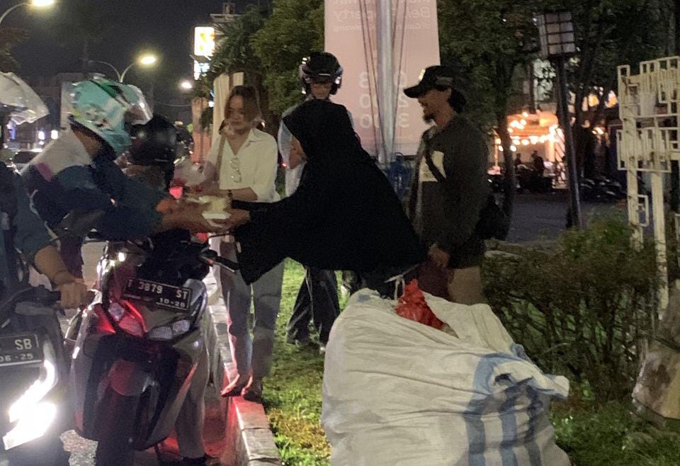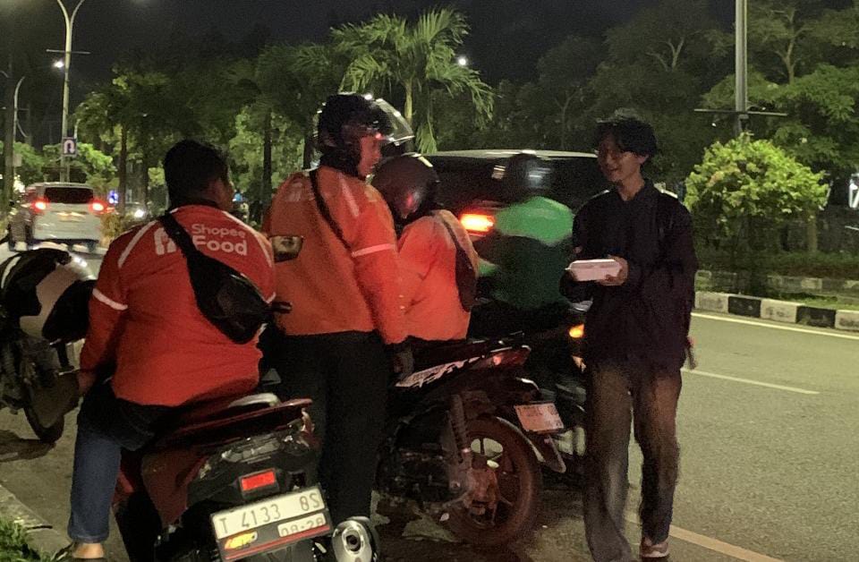 Saat pembagian, suasana hangat tercipta ketika mahasiswa berinteraksi langsung dengan para pengemudi Ojol. Bantuan tersebut diterima dengan rasa syukur, terutama karena diberikan di tengah kesibukan mereka mencari nafkah.